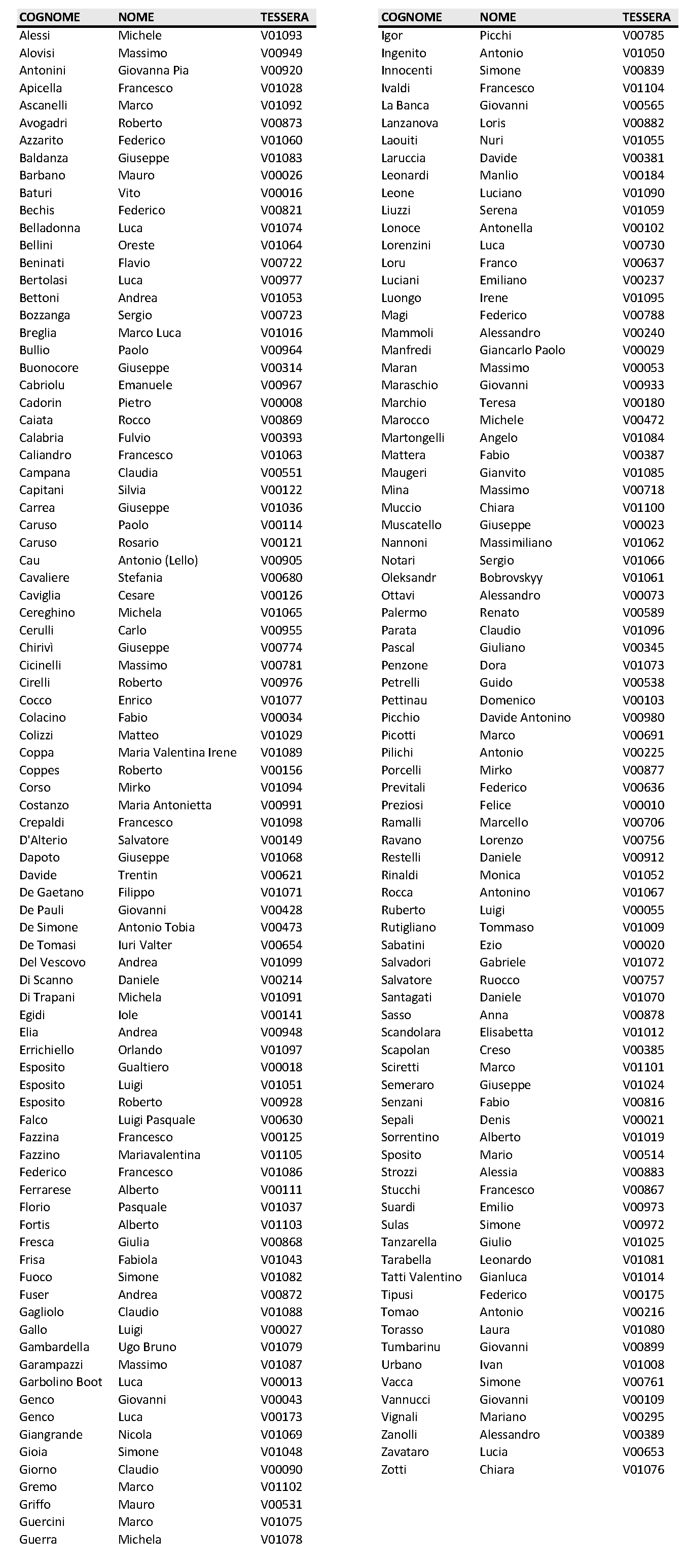ELENCO DEI VOLONTARI ISCRITTI - ANNO 2025
